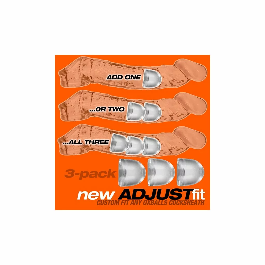 Schafft Cocksheaths, die sich jedem anpassen. Fügen Sie bis zu 3 weitere ADJUST Fits hinzu! Hergestellt aus klarem, diskretem Flextpr™, sie “verschwinden” und fühlen sich genauso an wie Ihr Schaft. Jeder Einsatz verkürzt den Innenschaft um ca. 2,2 cm. Die Form passt sich an und formt sich zusammen. Gleitmittel geeignet: auf Wasserbasis / Maße (ungefähr): 2,2 cm / Gewicht: 70 g