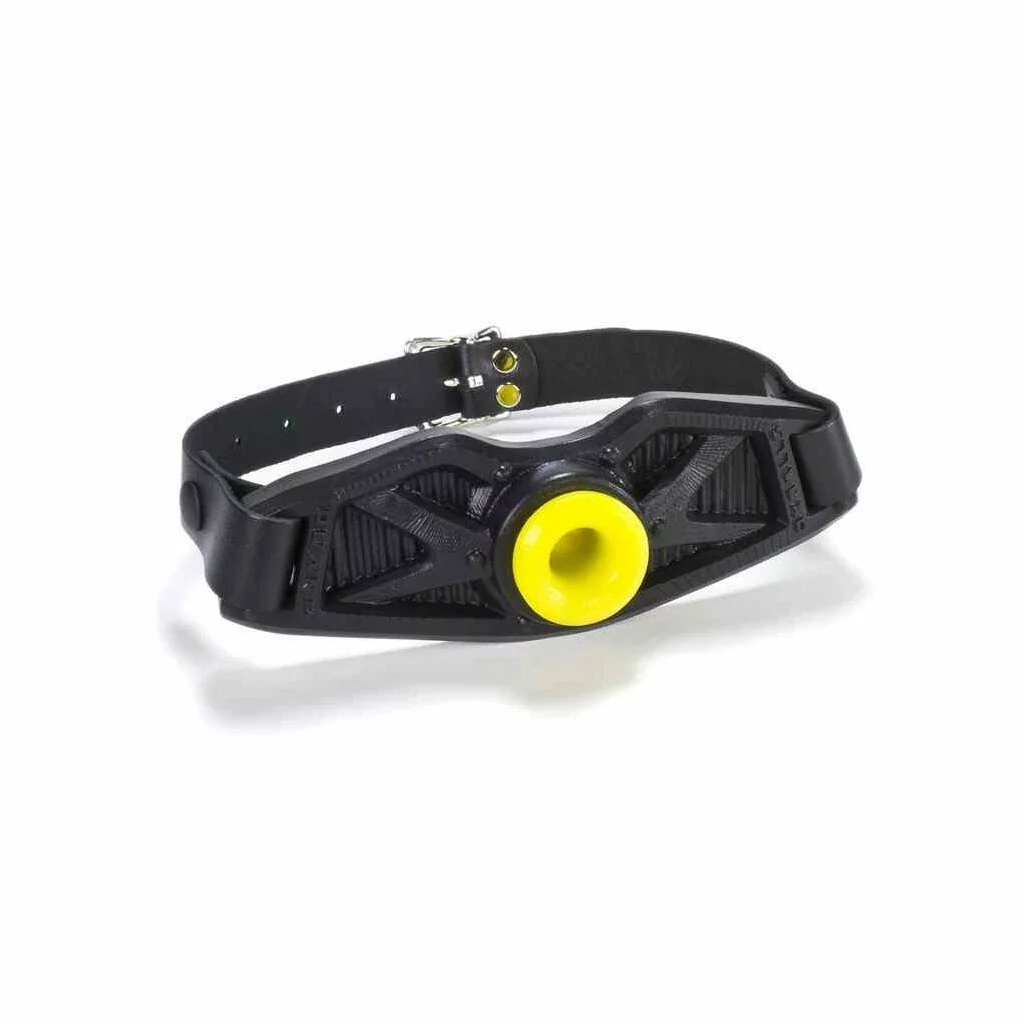 GUARD GAG ist eine weiche Silikonblende, die an einem Satz gummiartiger Bänder befestigt ist. Die Platte und der hohle Mundstück-Einsatz sind aus dem hochwertigen Pure Platinum Silikon gefertigt, so dass sie dick und fleischig sind, aber immer noch weich und glatt anfühlen. Das Mundstück aus reinem Silikon kann zur Reinigung oder zum Austausch für einen anderen Knebel leicht entfernt werden. Die Riemen sind verstellbar und dehnbar und passen sich den meisten Kopfgrößen an.