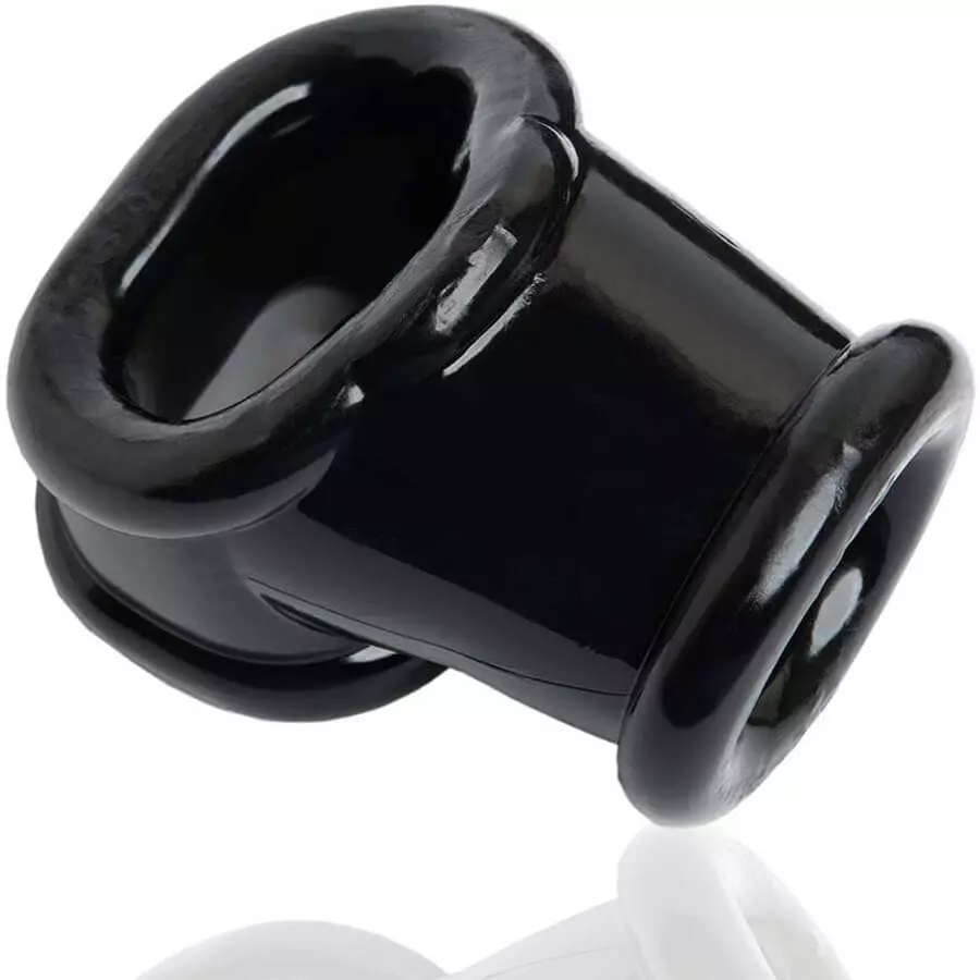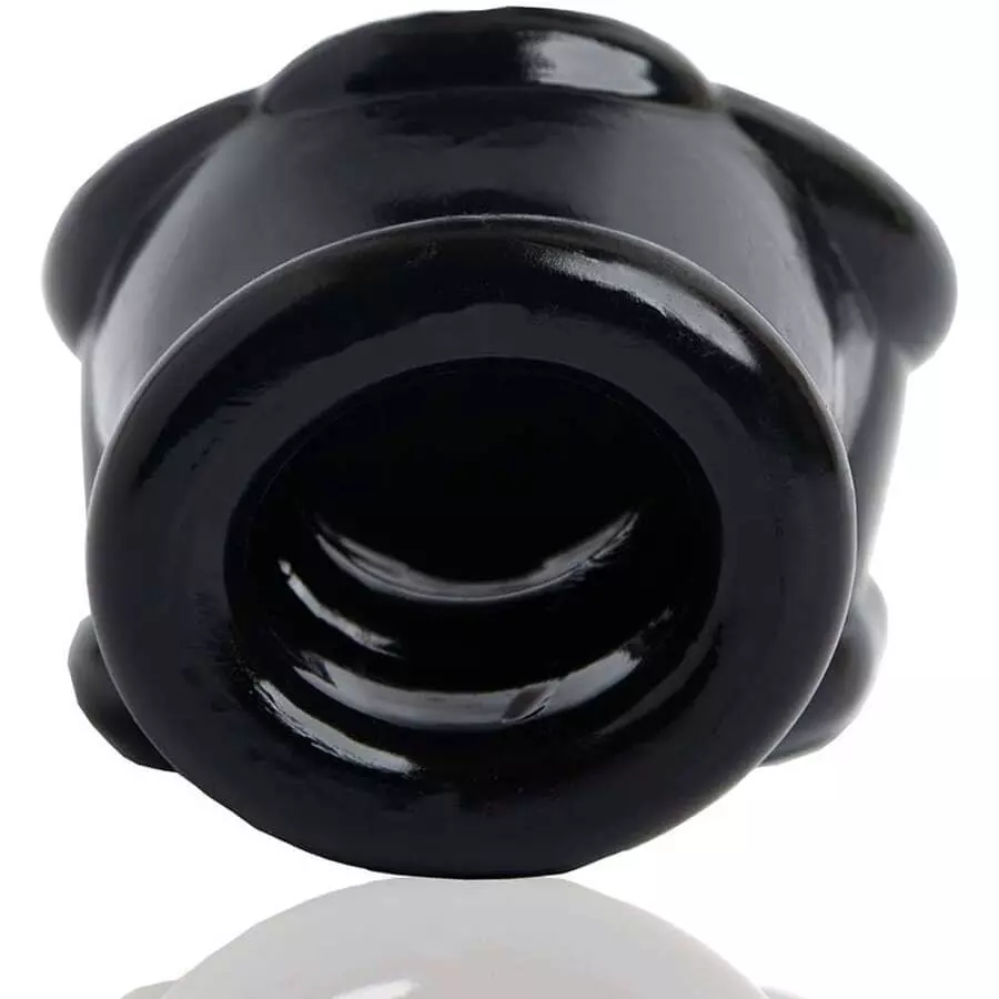Es besteht aus unserem FLEXtpr, ist also gummiartig und matschig, aber immer noch fest genug für ernsthafte Hoden-Stretching-Action.
